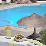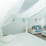 Das 3-Sterne-Hotel ist in 3 Kilometer Entfernung von der Matogianni-Straße gelegen. In ungefähr 15 Gehminuten von der Unterkunft aus erreicht man den Strand Psarou. Das Kamari liegt in 3,1 Kilometer Entfernung vom Lena-Museum. Der Busbahnhof Platys Gialos ist 10 Minuten Fußweg vom Hotel entfernt.